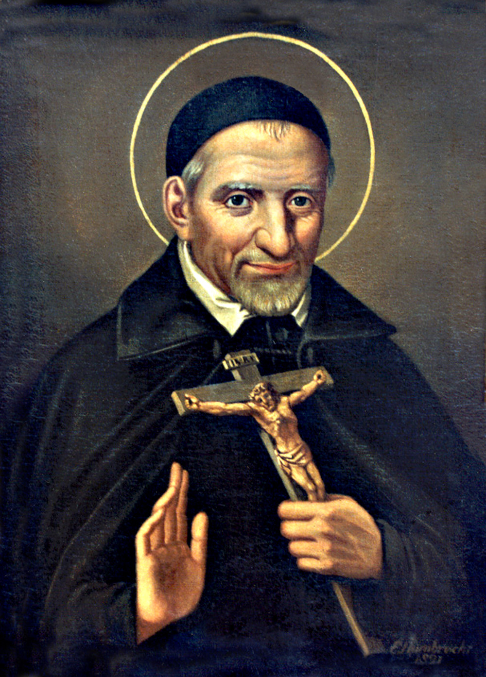 Vincent de Paul, blessing, holding crucifix