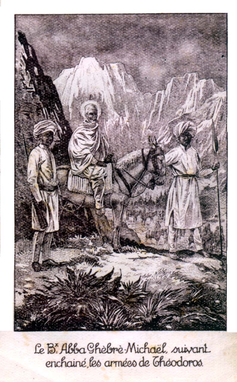 Holy card; the transfer of Ghebre-Michael in chains