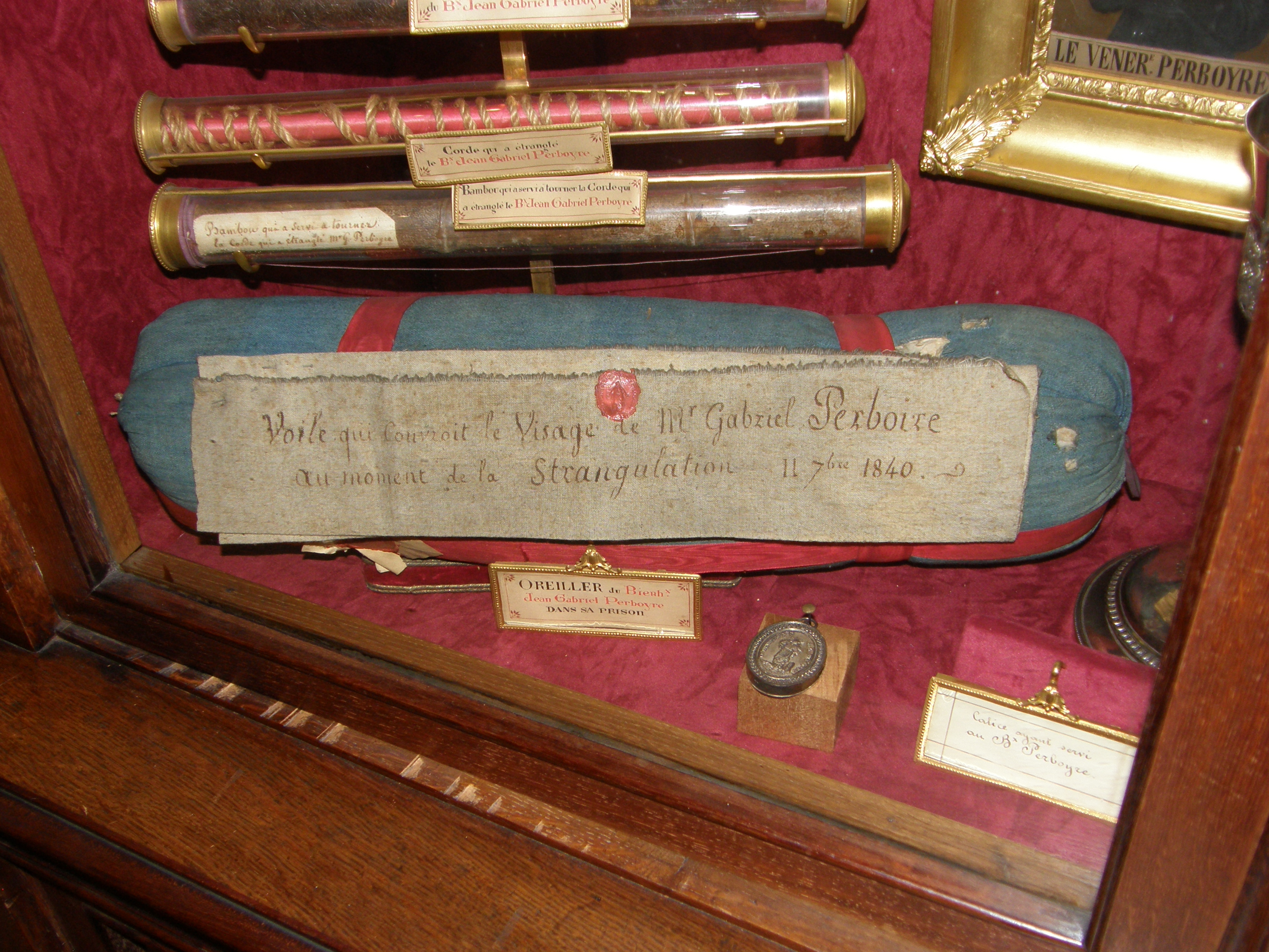 "Veil that covered the face of Fr. Gabriel Perboire [sic] at the moment of the strangulation, 11 September 1840"