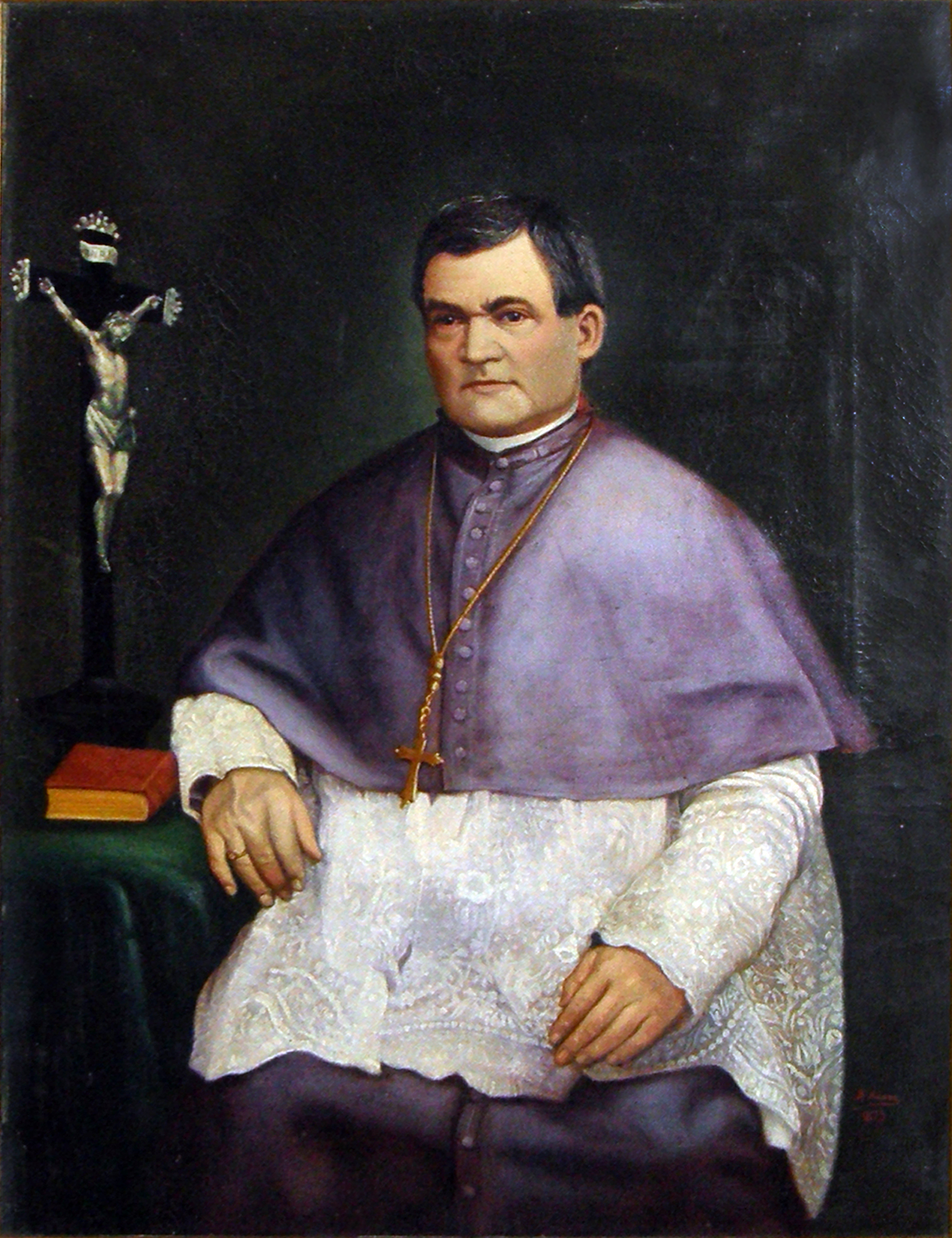 Painted in Barcelona, 1873, by Faustino Adam y Tous; original in sacristy, Vincentian chapel, St. John's Seminary, Camarillo, CA. Done from a photograph.