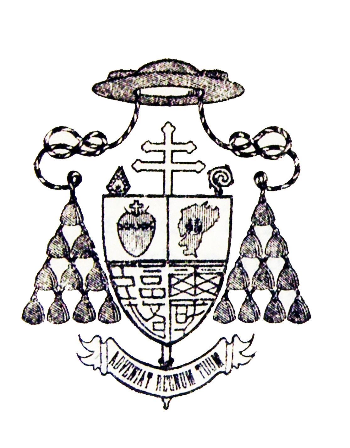 Latin motto: Thy kingdom come Ancient Chinese characters in the lower two quadrants