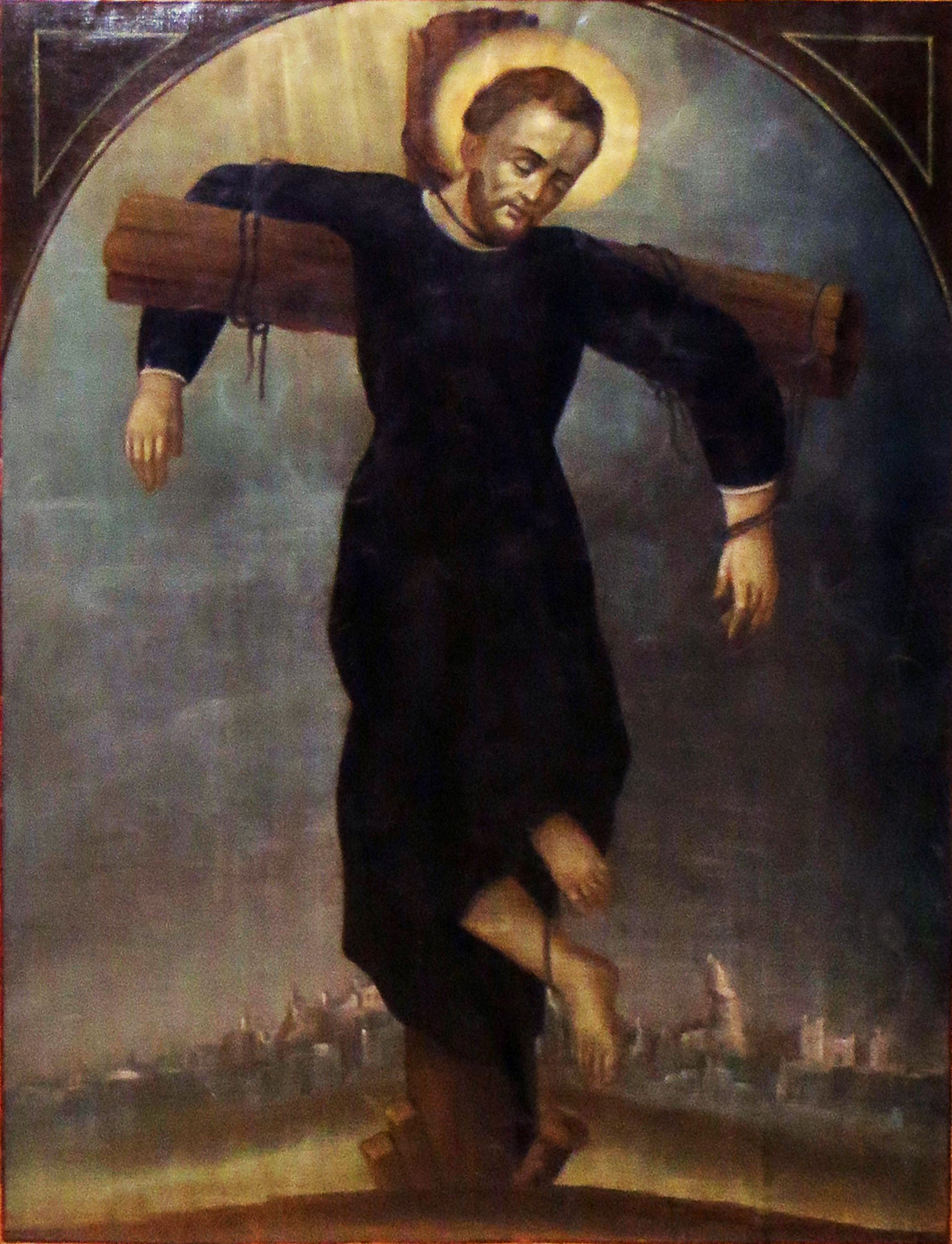 Reverse of double-sided painting (obverse = Vincent de Paul) Shown with fanciful Chinese landscape