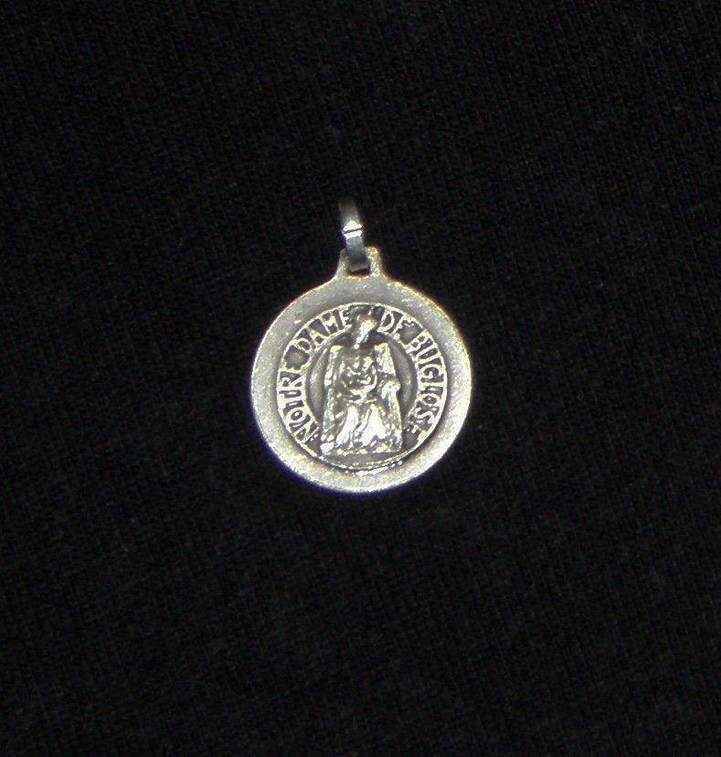 Reverse, statue of Notre Dame de Buglose, with identifying inscription