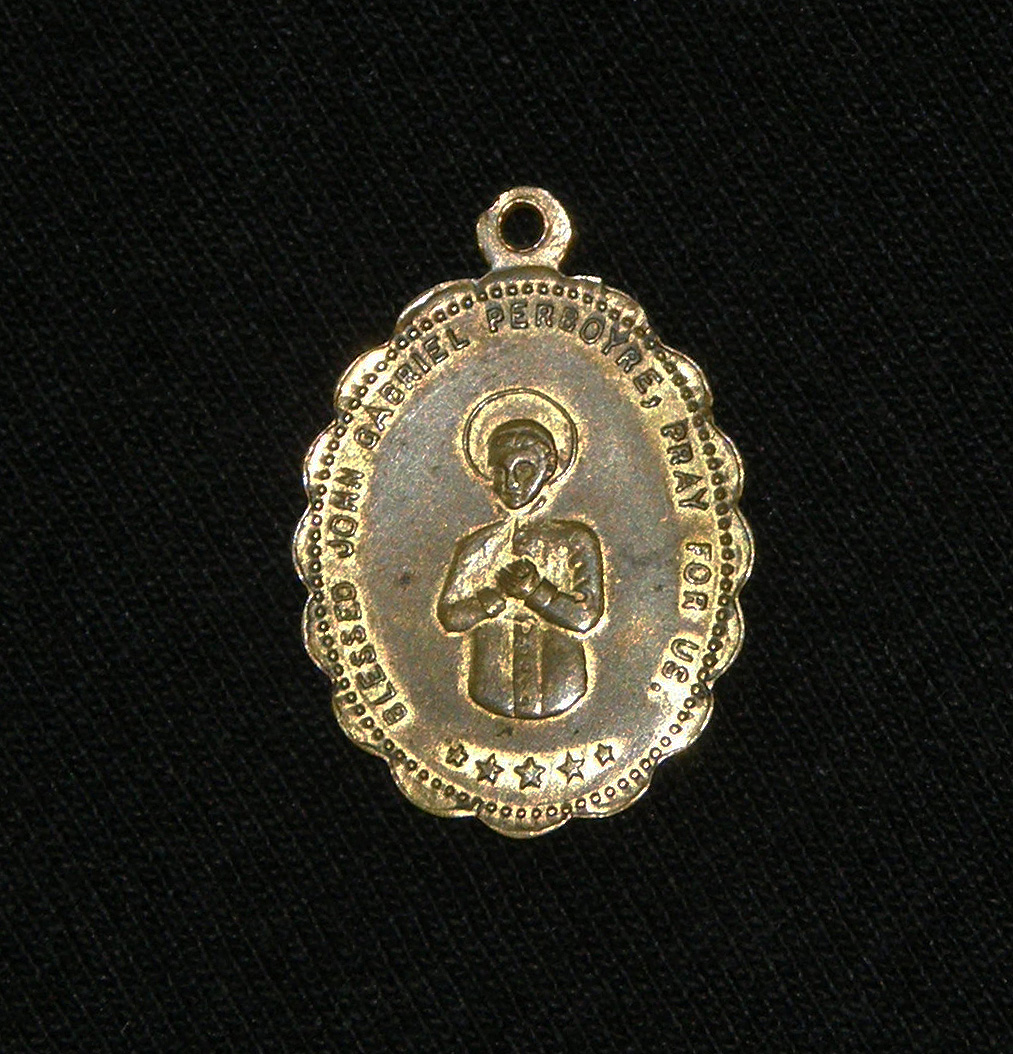 Reverse, Blessed John Gabriel Perboyre (hence 1889 or later); English text; standing, cassock, skullcap, halo, hands clasped over his chest in gesture of prayer.