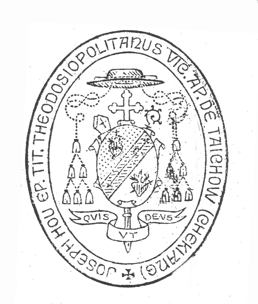 Vicar apostolic of Taichow Motto: Who is like God? Emblems of Sacred Heart of Jesus, Immaculate Heart of Mary