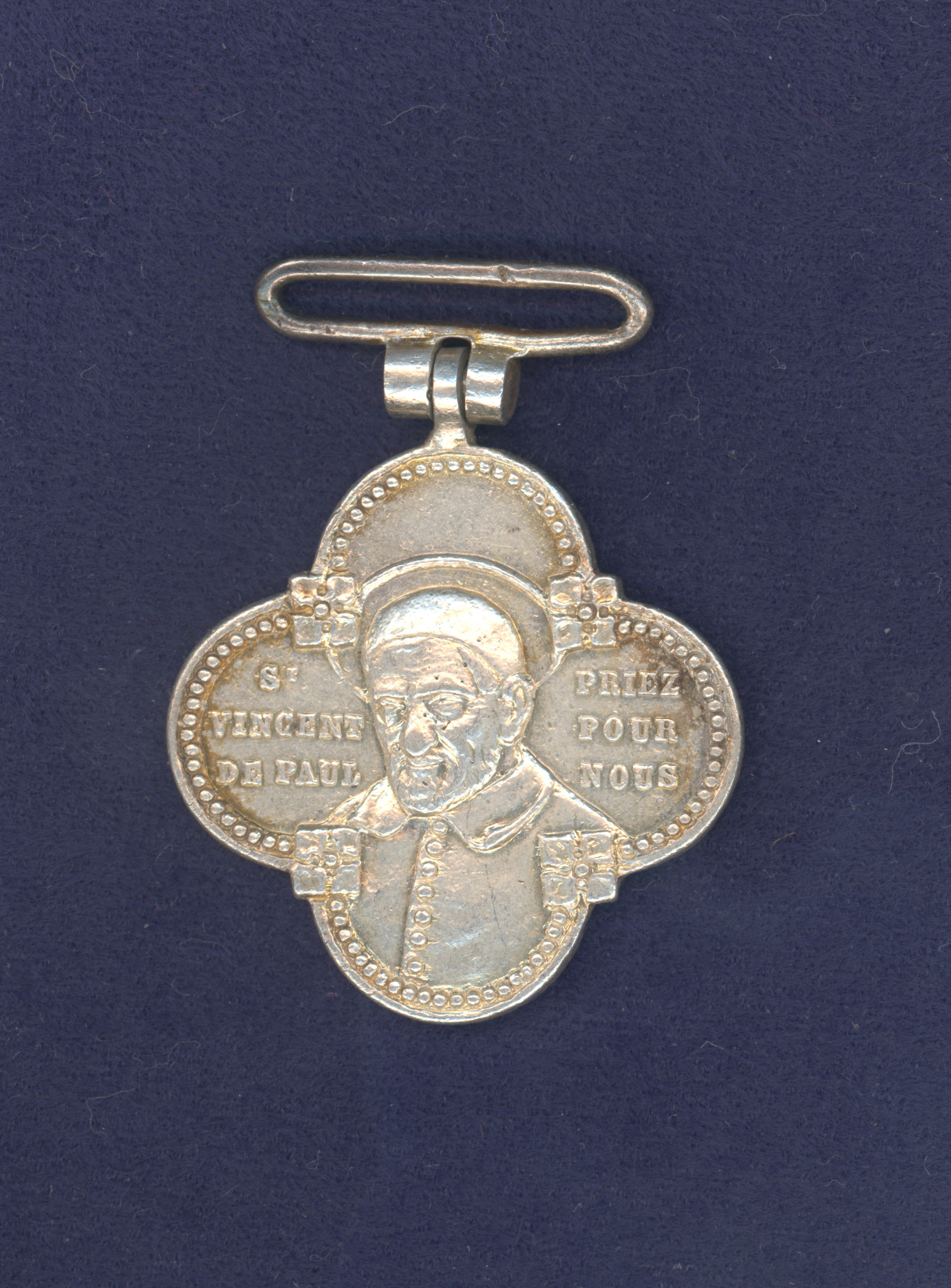 Vincent de Paul medal, quadrifoliate, with ribbon ring