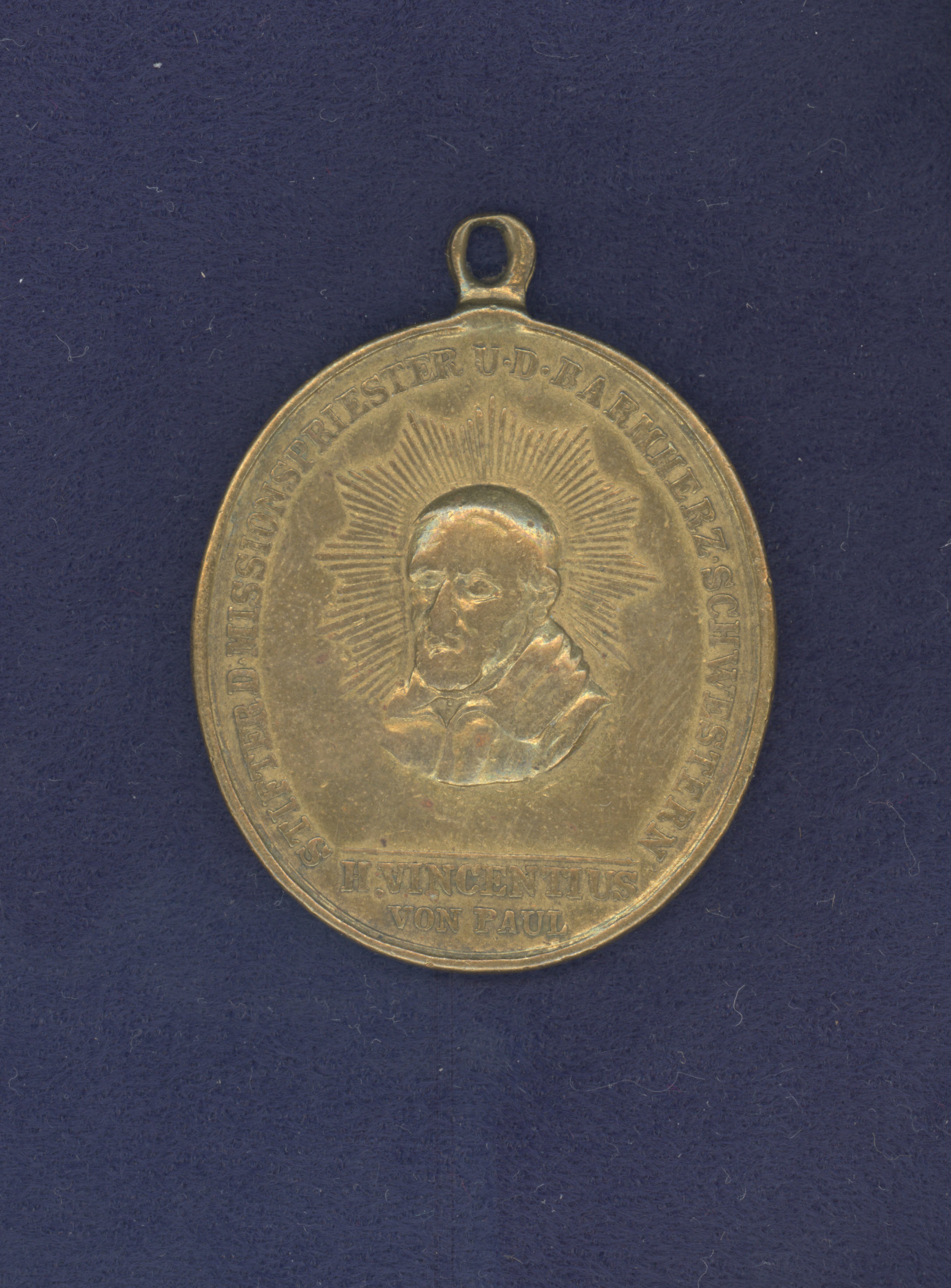 Oval medal with ring; German text: "Founder of the Priests of the Mission and the Daughters of Charity." DePaul University collection