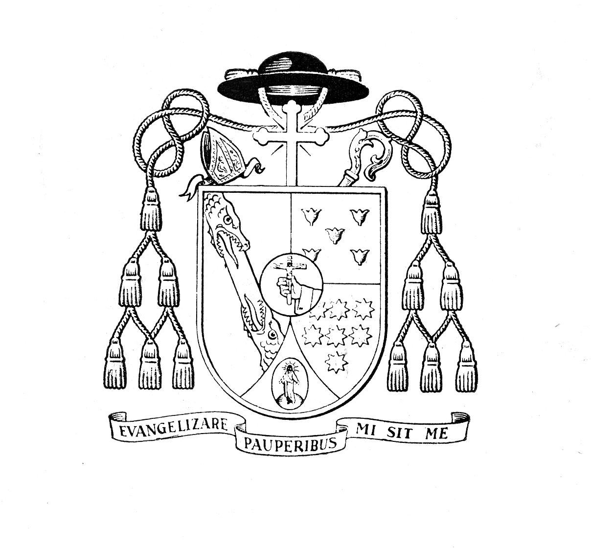 Motto: He has sent me to preach the Gospel to the poorCM emblem in shield' hand with mission crucifix in center.