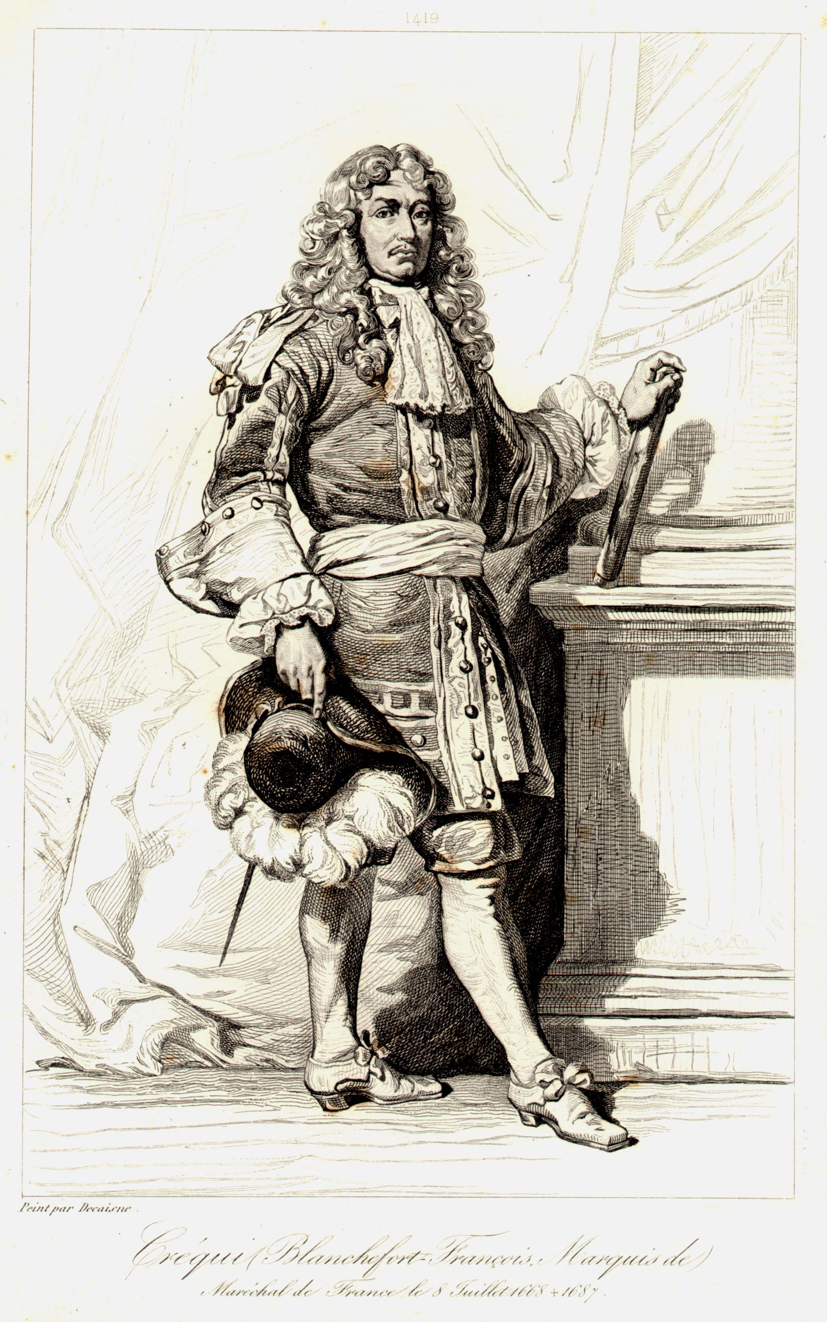 Blanchefort-Franois, Marquis de CRƒQUI, 1624-1687. MarŽchal de France. Fils de Charles. DessinŽ par Frimolet d'auprs un tableau de Decaisne.