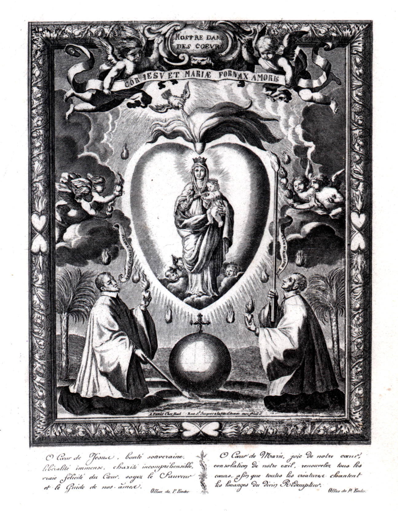 Notre-Dame des cÏurs, CÏur de Marie fournaise d'amour, A Paris chez Huot, rue Sain-Jacques, ˆ la ville d'Anvers. Avec invocations tirŽes de l'office du P.Eudes.