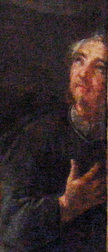 Without surplice, still alive at date of painting; from painting by Bro. Jean André of Glorification of St. Vincent, probably using contemporary paintings of first 6 superiors general. Painting in Bourg-la-Reine.