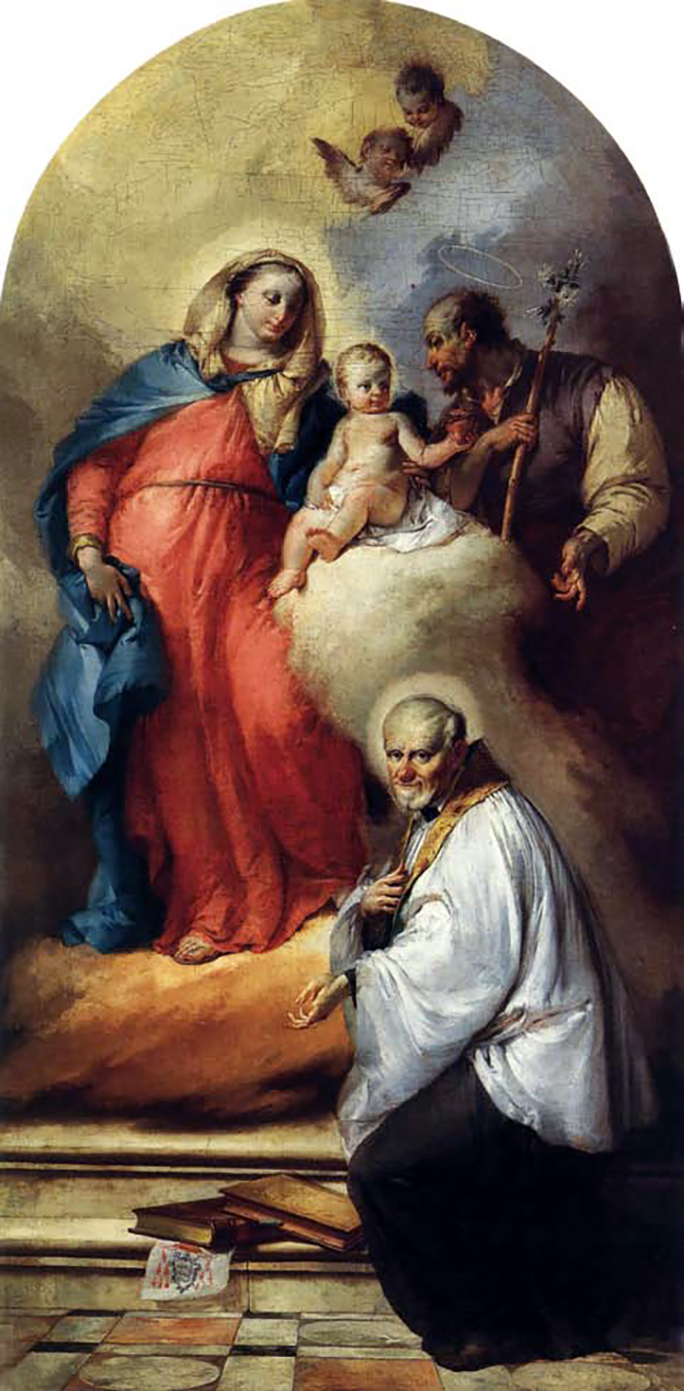 Holy Family; by Francesco Zugno; bishop's coat of arms at bottom step