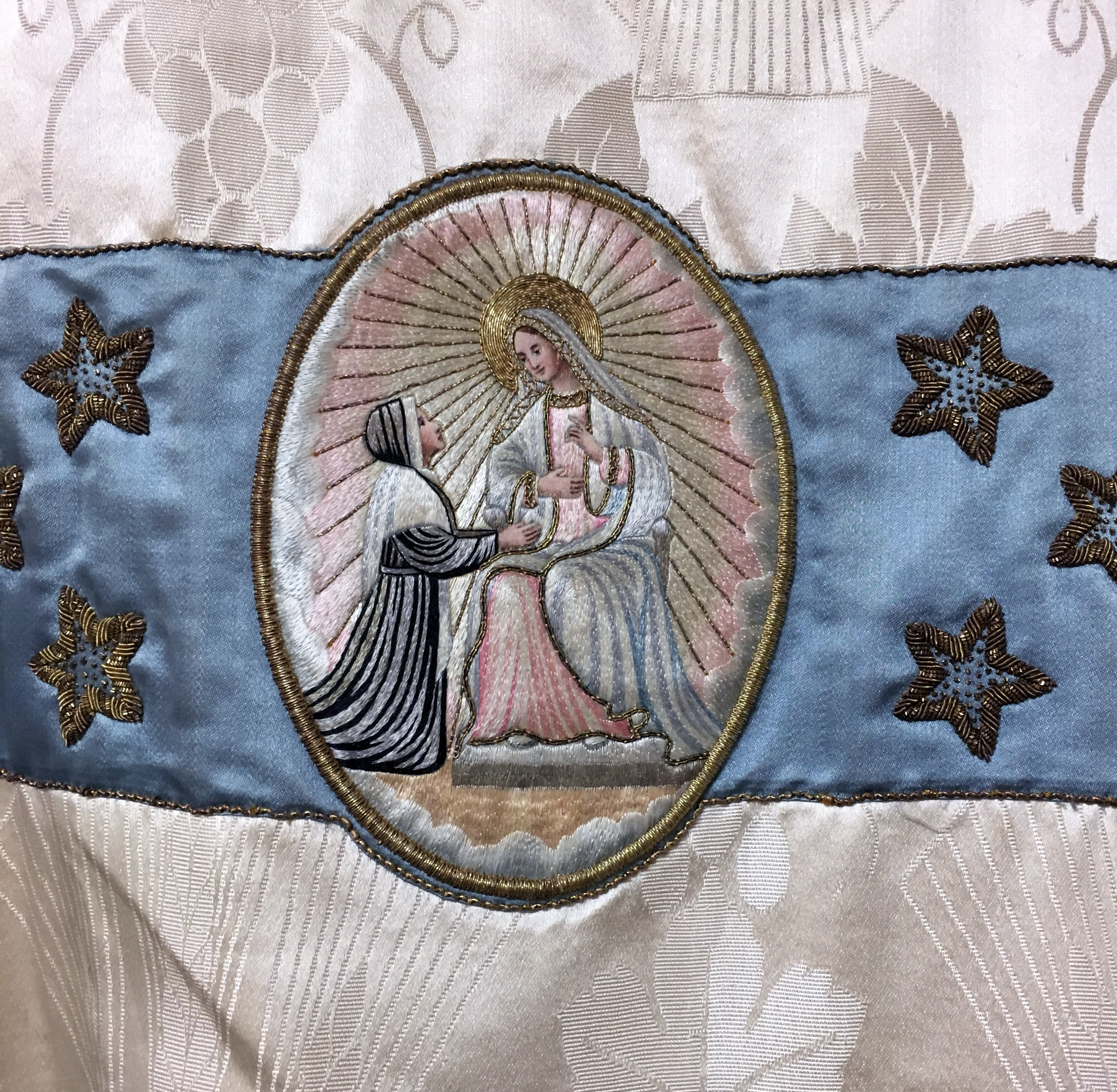 French silk embroidery on a vestment, about 1950