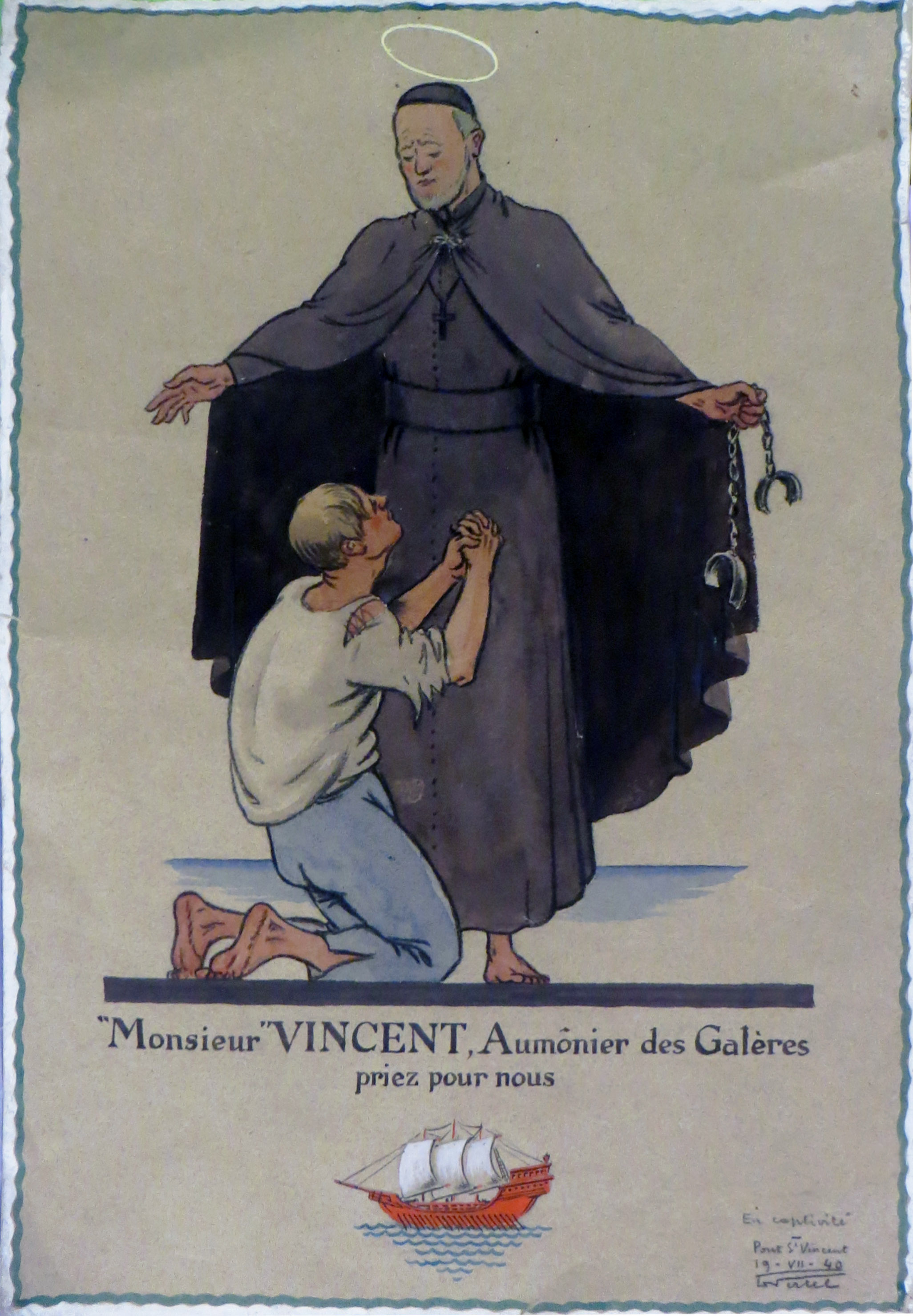 Original watercolor, done by a French prisoner, 1940; DePaul University collection