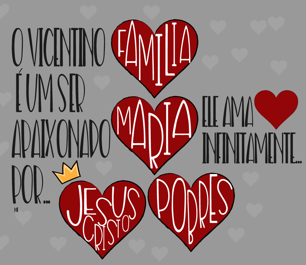 Text: The Vincentian is a being passionate for family, Mary, Jesus Christ, the poor; he loves infinitely