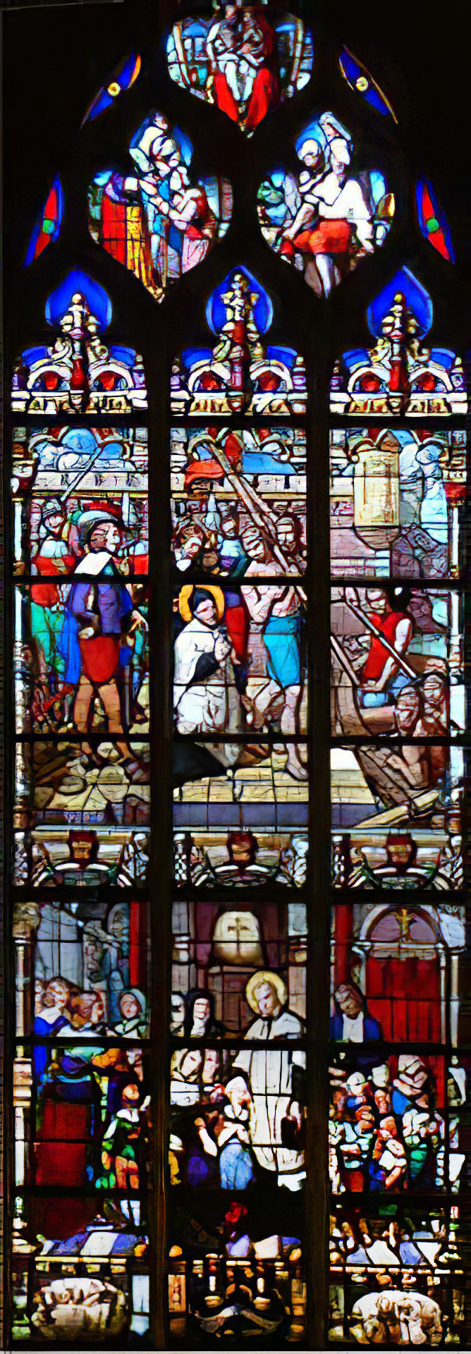 Two scenes, Vincent de Paul with galley prisoners, with Ladies of Charity, Louise de Marillac, foundlings; location of original unknown