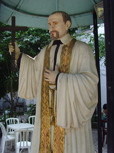 Painted plaster; Vincent de Paul, standing, cassock, surplice, stole; holding cross; internet image, location of original unknown