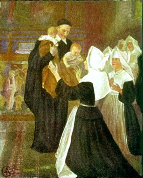 Vincent de Paul entrusting infants to Sisters of Charity