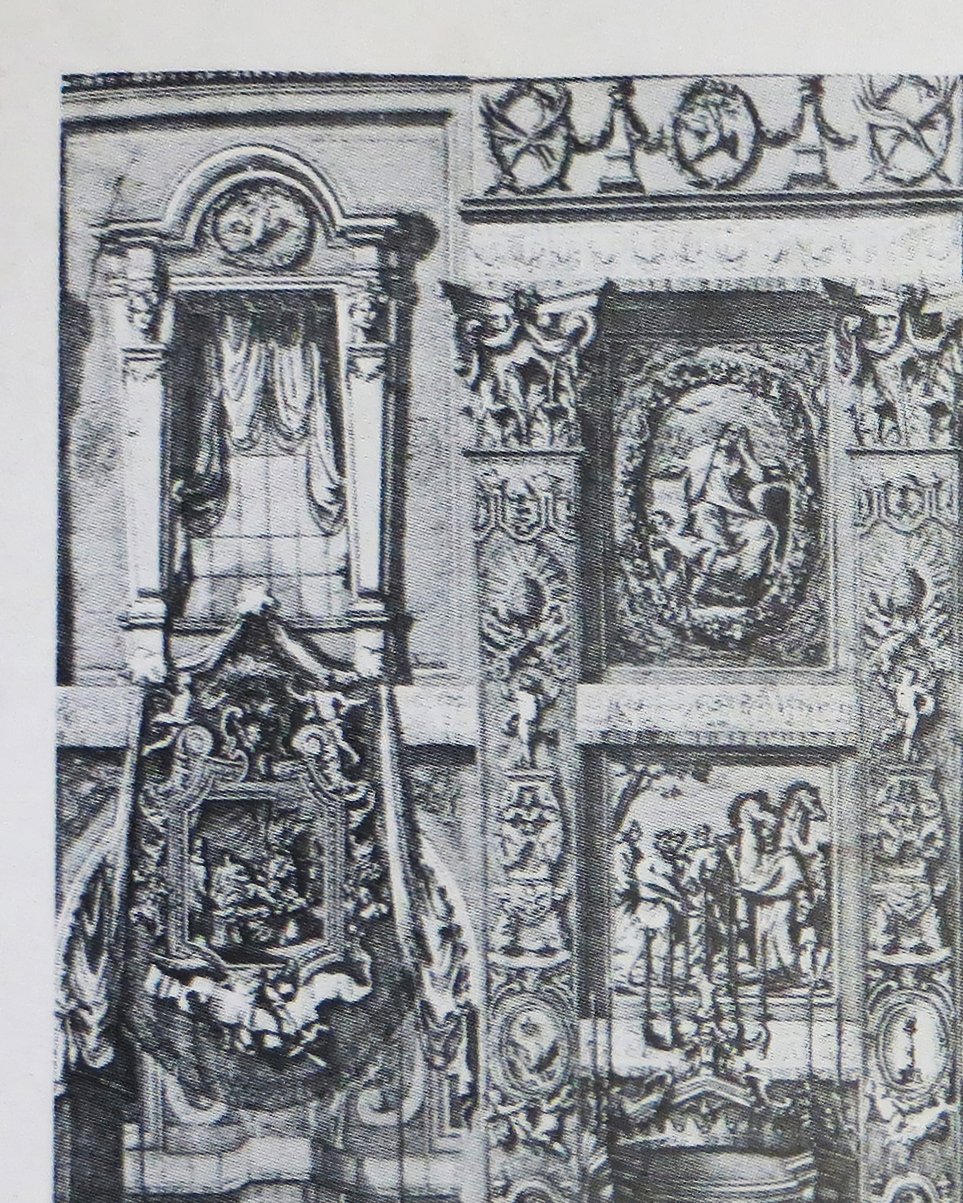 Oval and square paintings depict evangelists