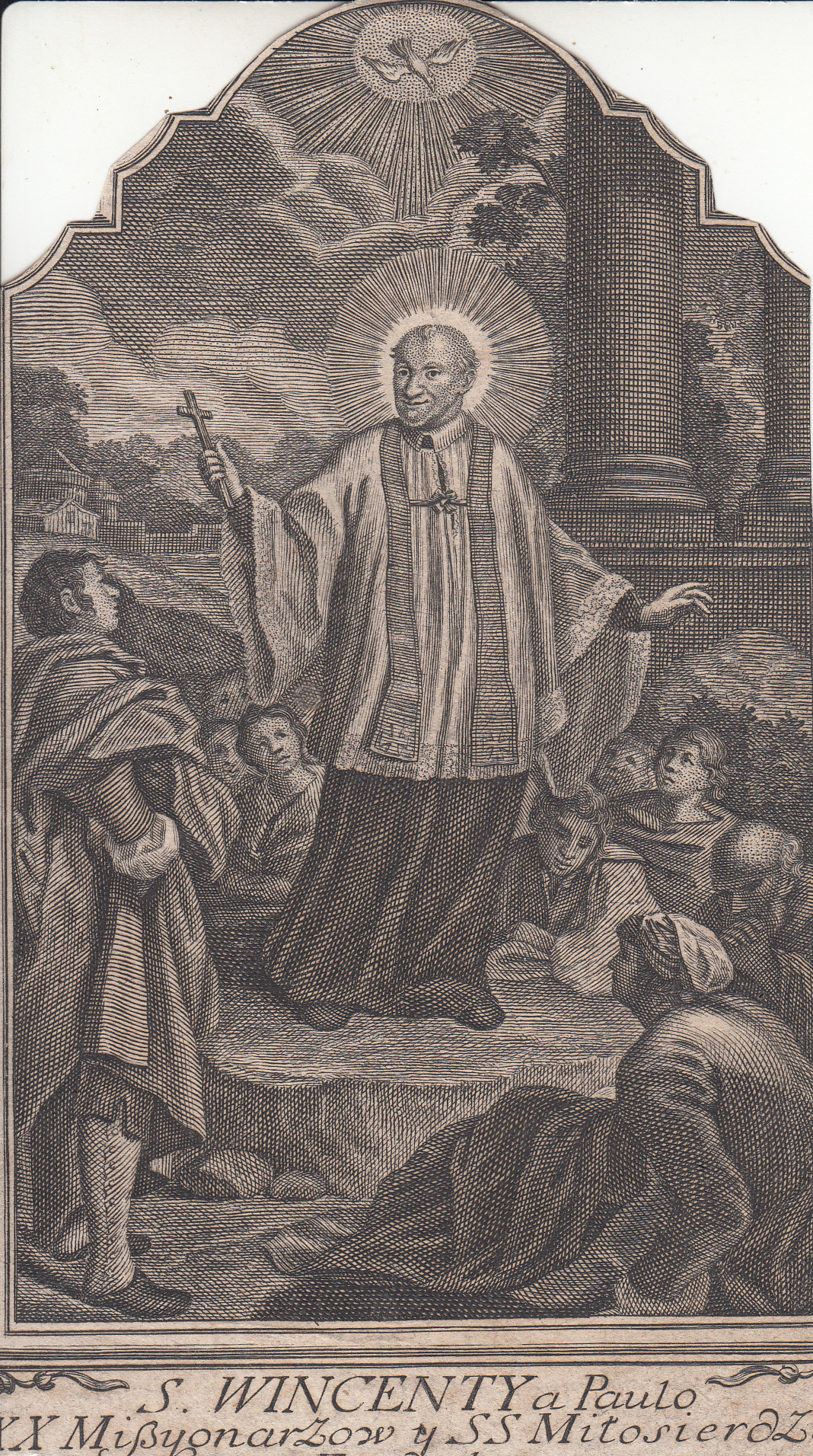Image cut from a book; partial text: SVdP, [founder of] the priests of the Mission and the Sisters of Charity