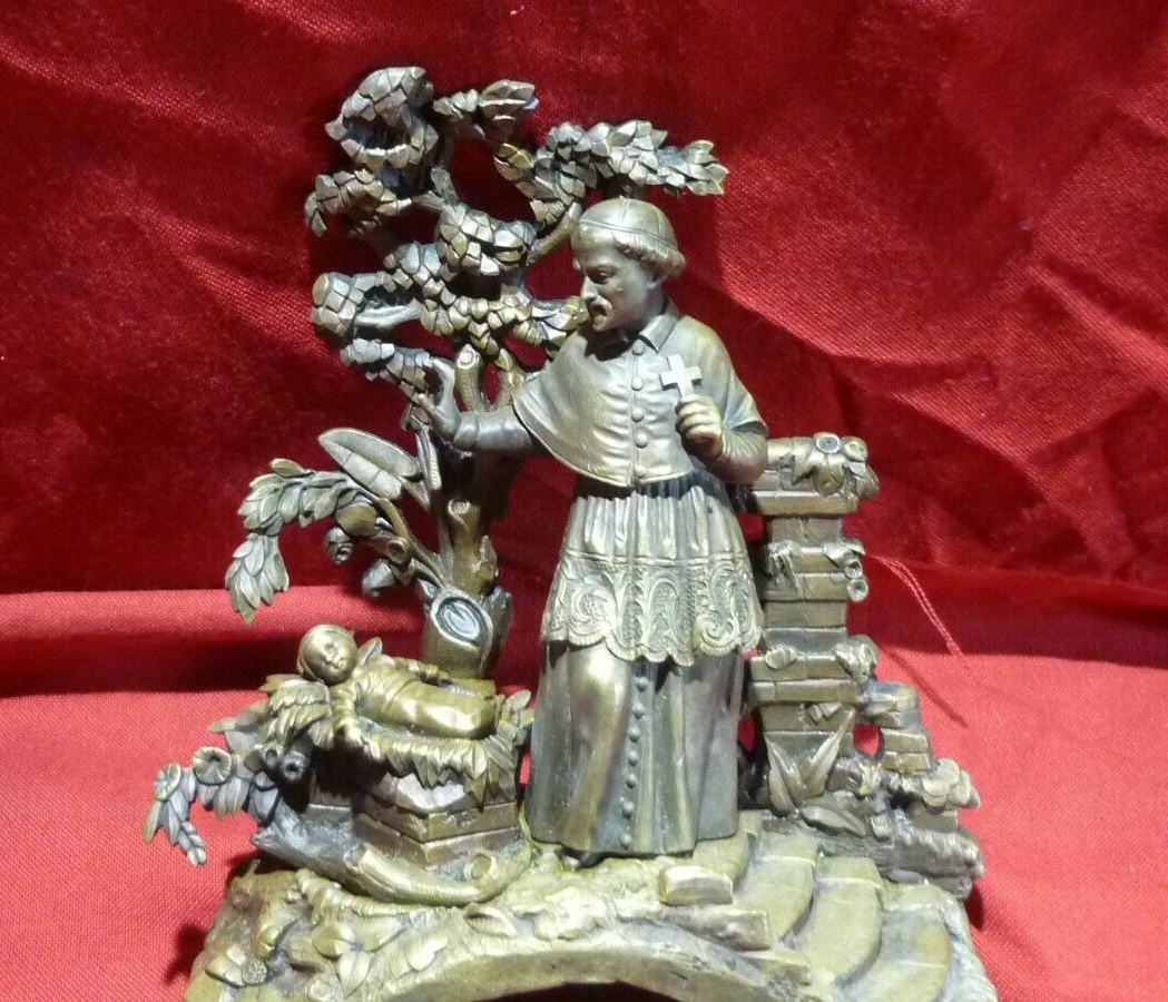 SVdP dressed like a bishop or cathedral canon, holding a cross; size 8" x 7" 3"