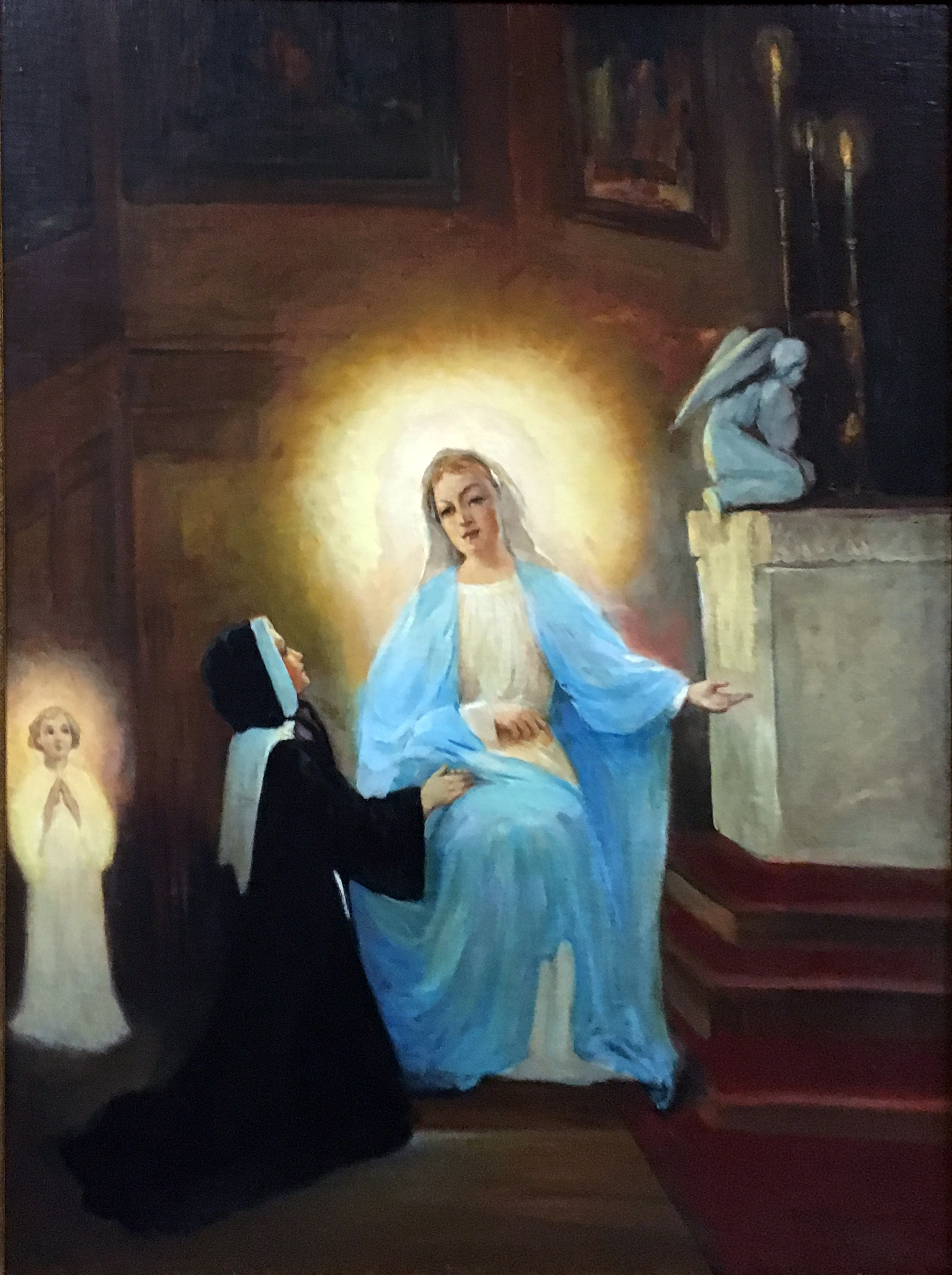 Apparition, seated, with angel