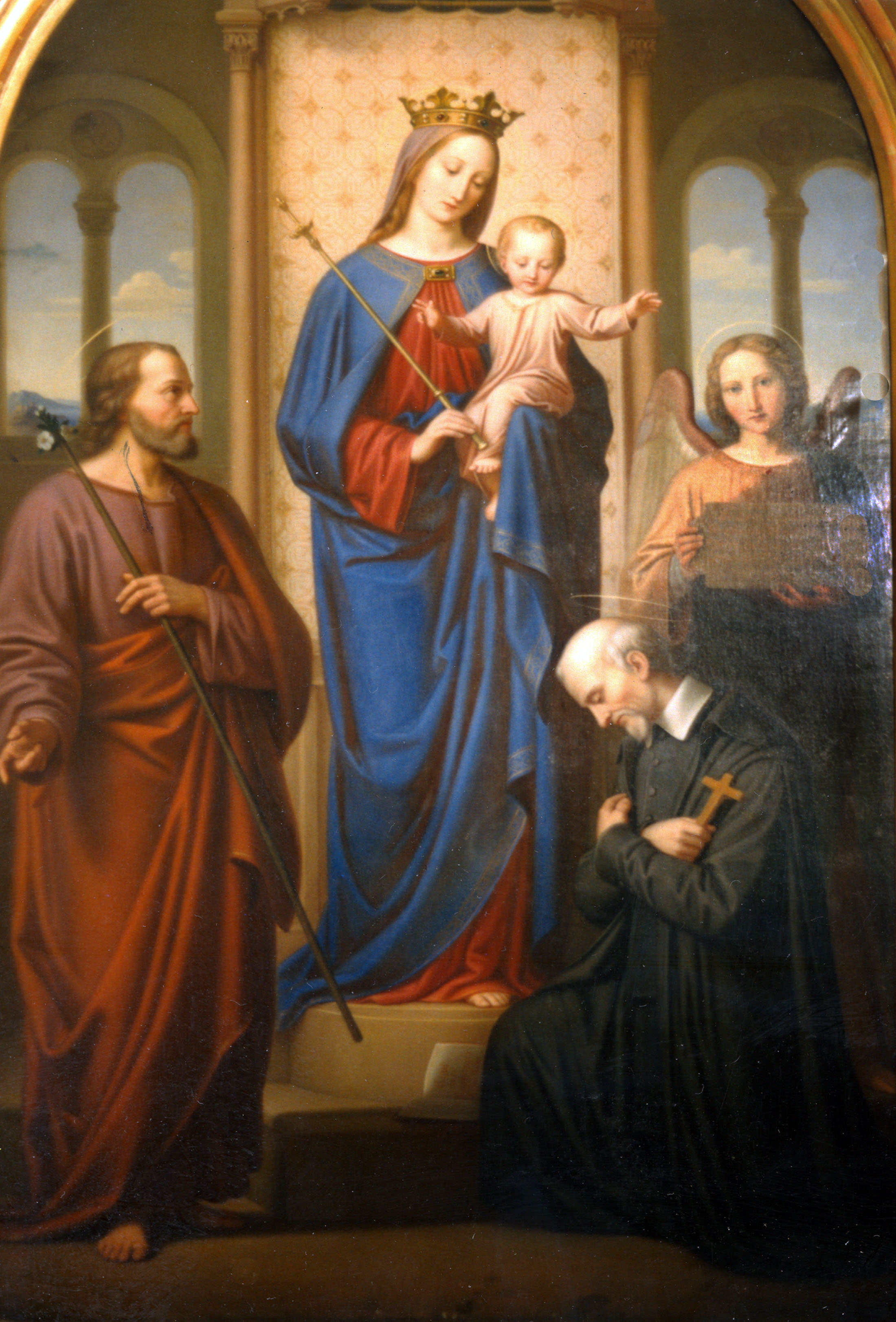 Vincent de Paul kneeling before Holy Family
