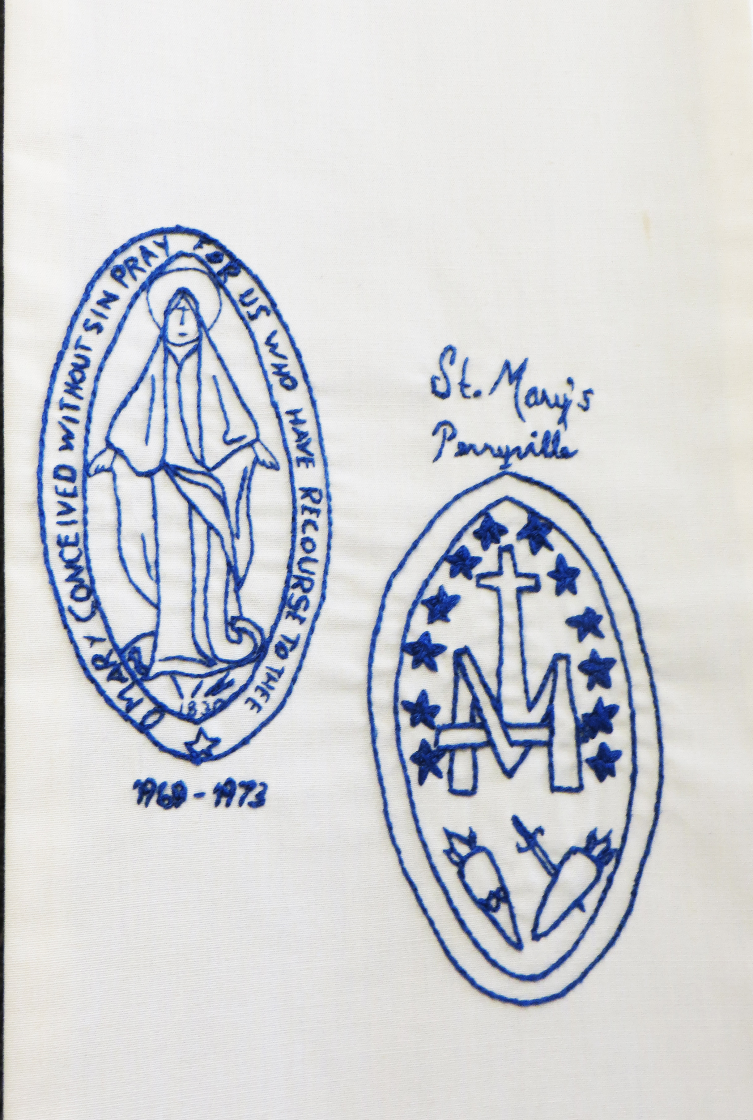 On a stole; dated 1968-1973, ordination year of Jay Jung, CM