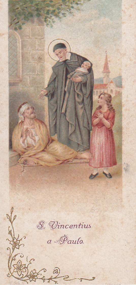 SVdP with crippled man, infant, young girl