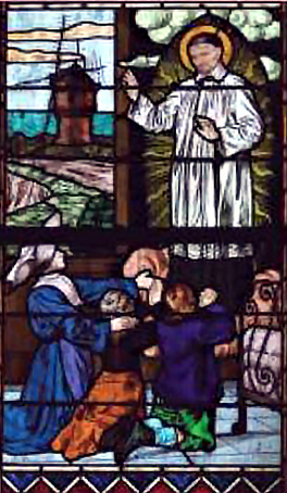 With Daughter of Charity, children; windmill in background