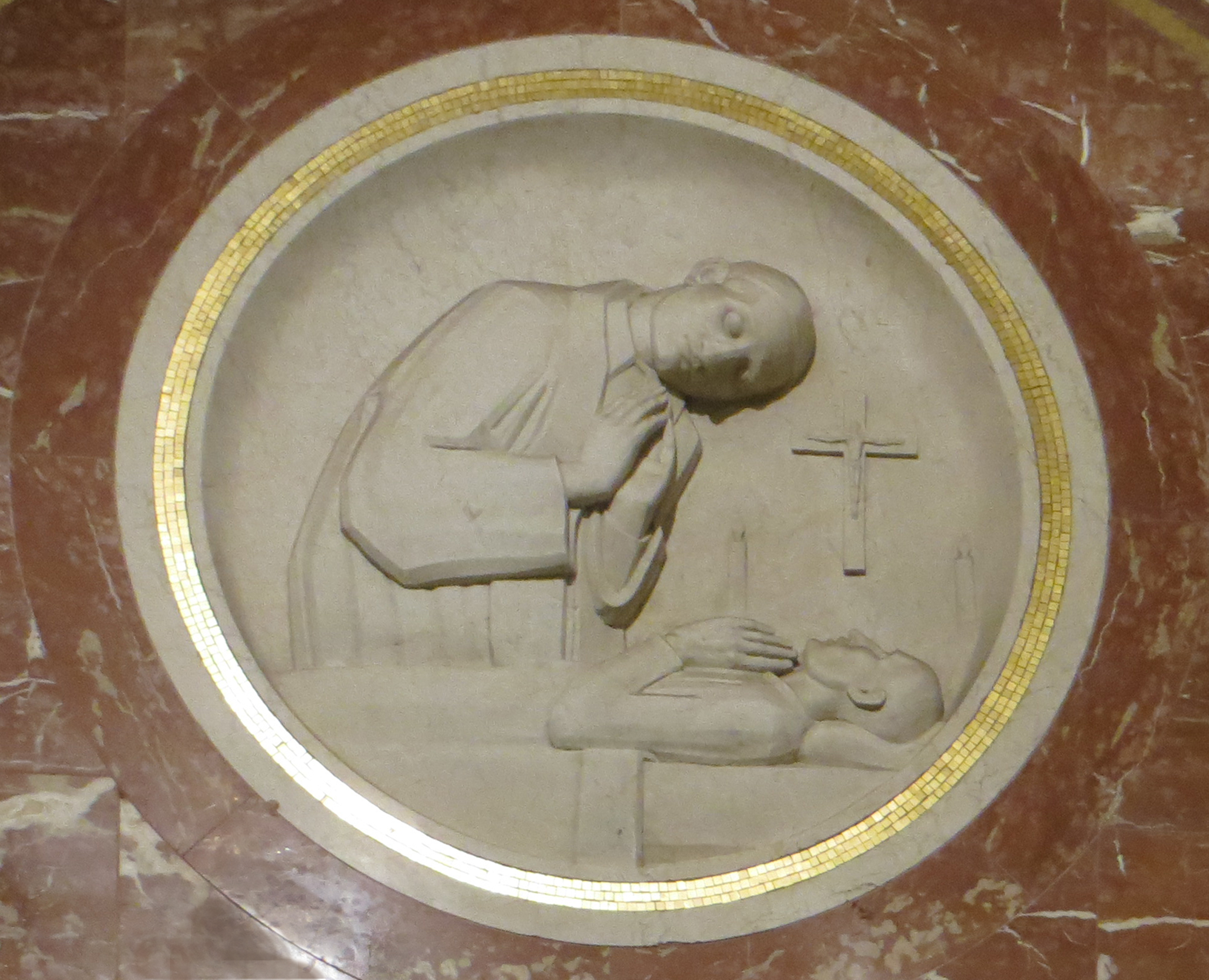 Vincent de Paul praying over a sick man