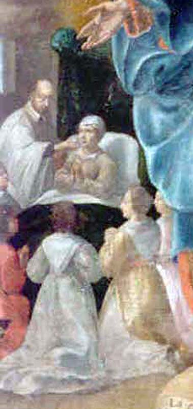 Vincent de Paul gives communion to a sick woman