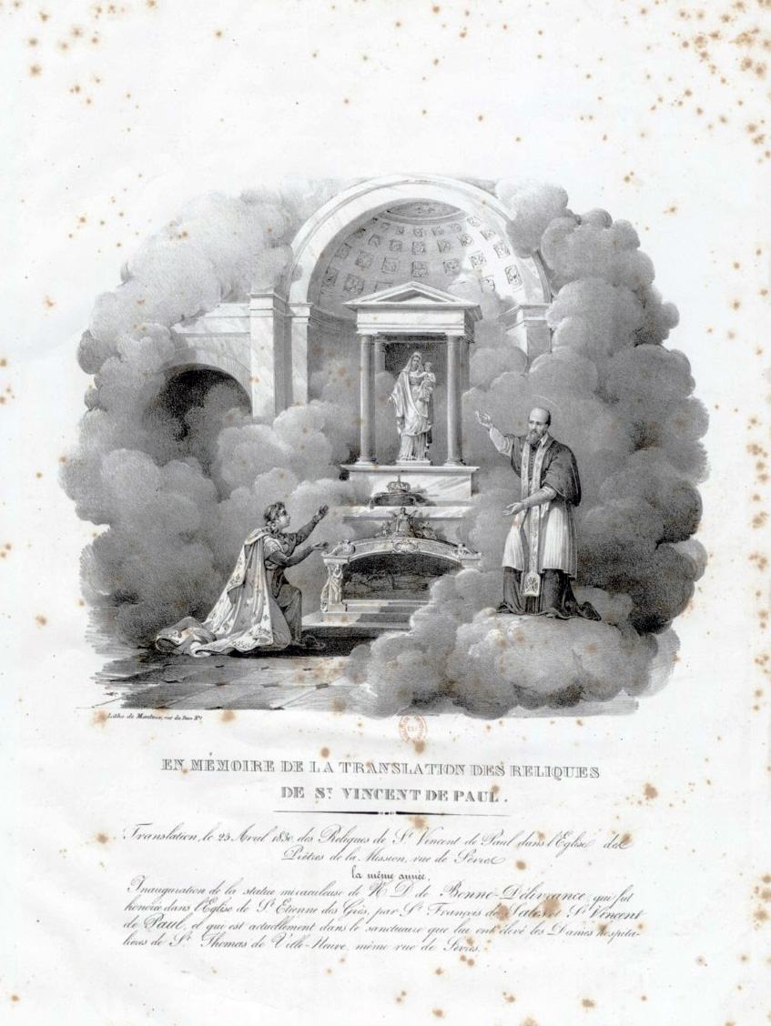 Also, same year: Inauguration of a miraculous statue of Our Lady of Good Deliverance. St. Fr de Sales prayed before it, as did SVdP. Statue moved to a convent on rue de Sevres, where the procession halted.