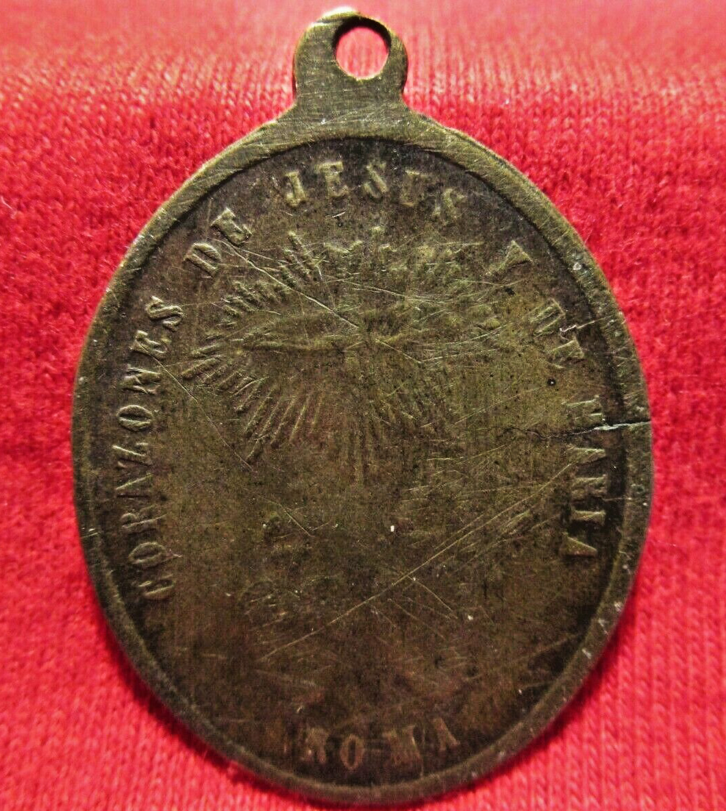 Spanish text: Hearts of Jesus and Mary, with Holy Spirit as a dove above