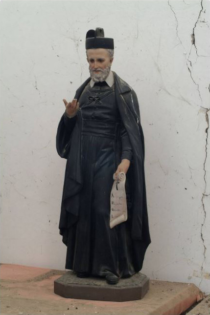 VdP, with biretta, holding scroll