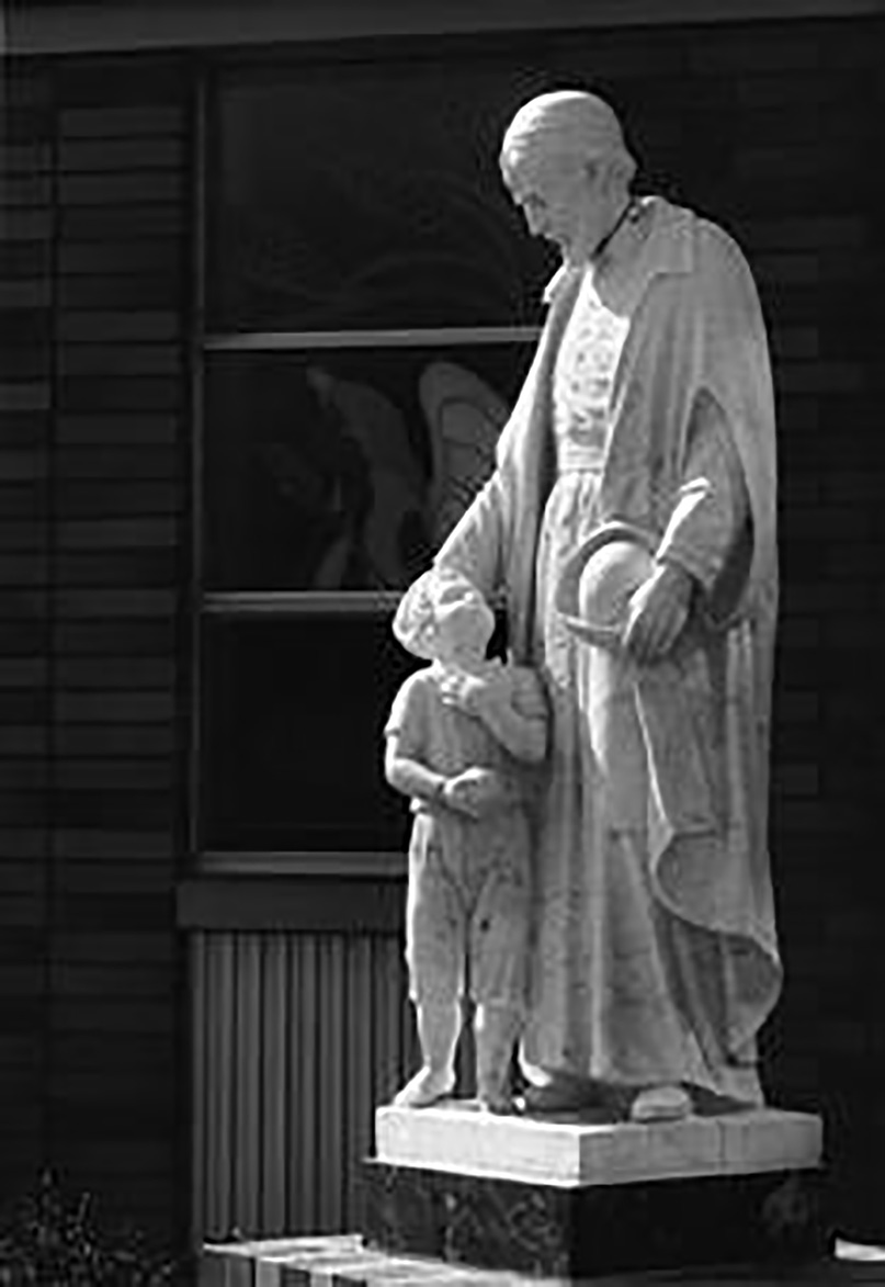 VdP with a boy; hat in hand; in cassock and mantle
