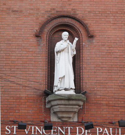 VdP holding a book, perhaps with a flame; place not identified