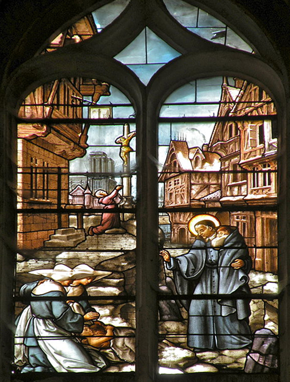 Caring for abandoned children; ND Cathedral in background; Daughters of Charity; mother praying for her abandoned child