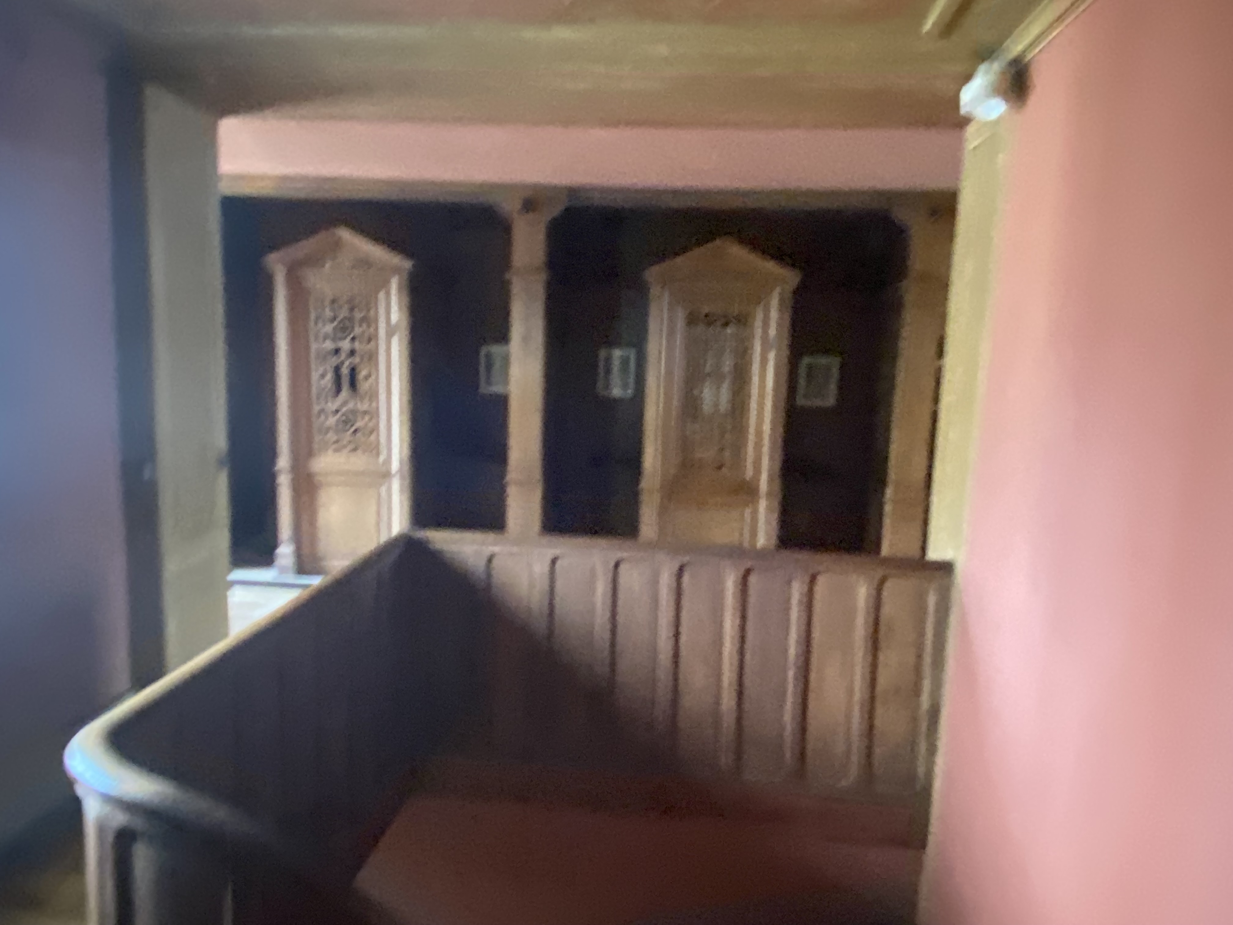 Inside staircase leading to rear gallery seating