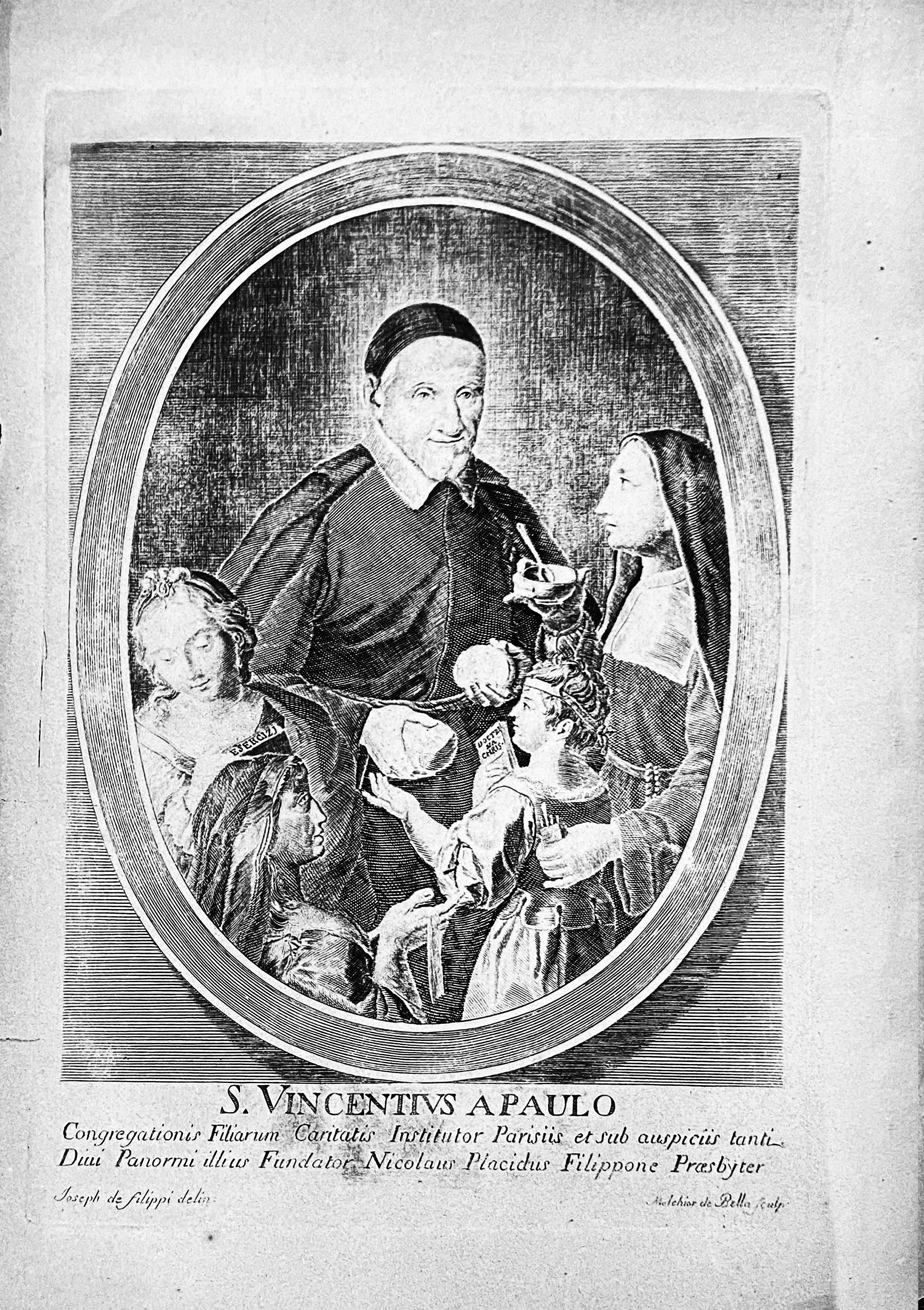 Text: SVdP, founder of the DC, Paris, and with the auspices of founder Fr. Nicolo Placido Filippone, Palermo"; signed: Joseph de Filippi