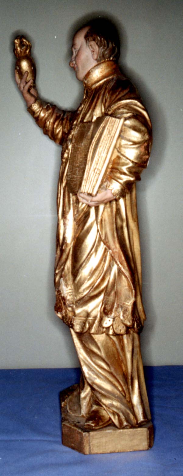 Side view of earliest statue of Vincent de Paul; original in chapel of hospital of Chaumont