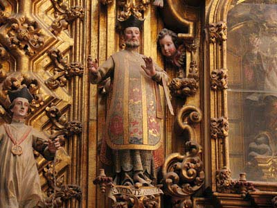 Shown with traditional Spanish biretta; rare depiction in Mass vestments