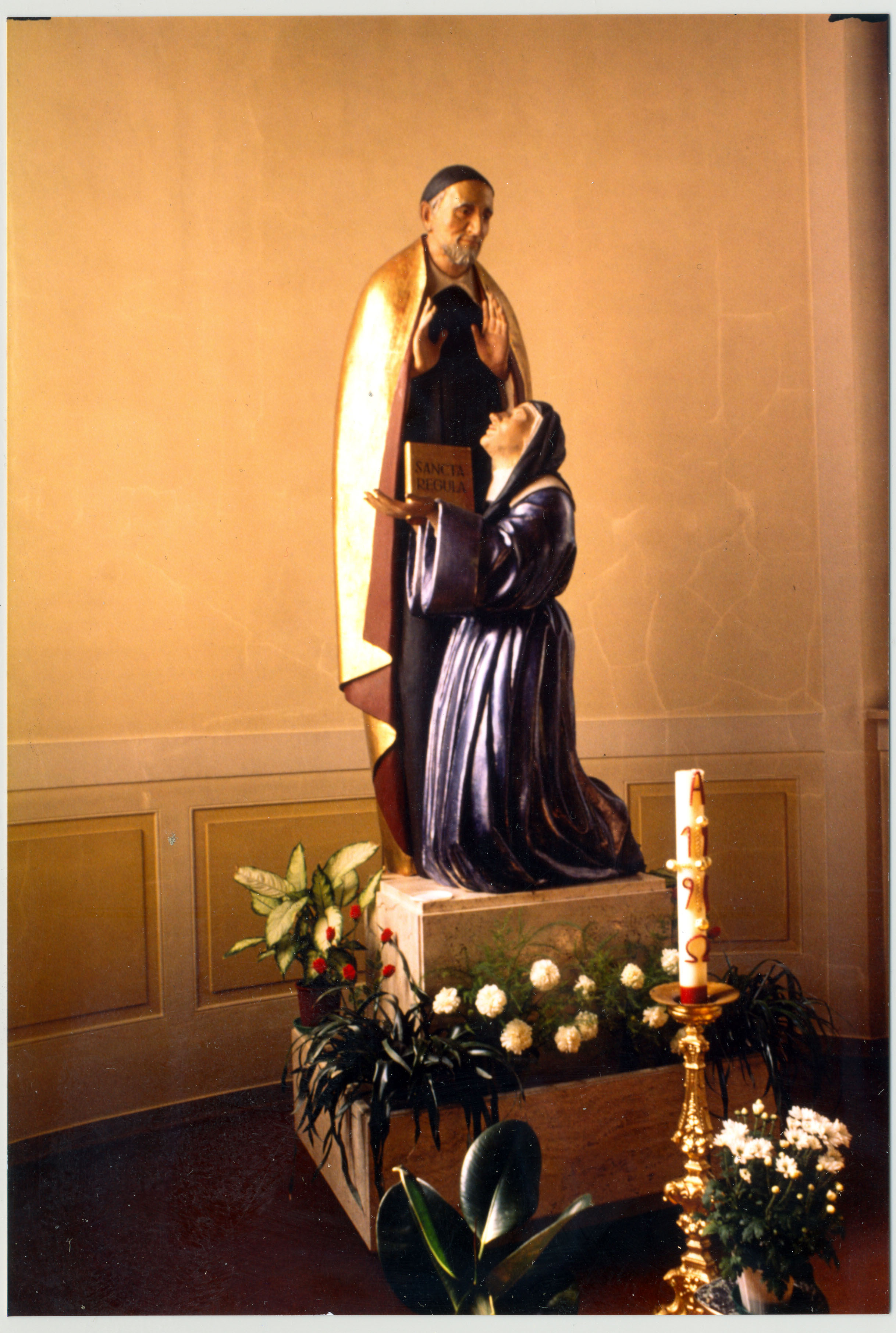 Vincent de Paul, standing, cassock, gilded cape; skullcap; Louise de Marillac kneeling; location of original unknown; photograph, 033, in Gunth collection, Paris
