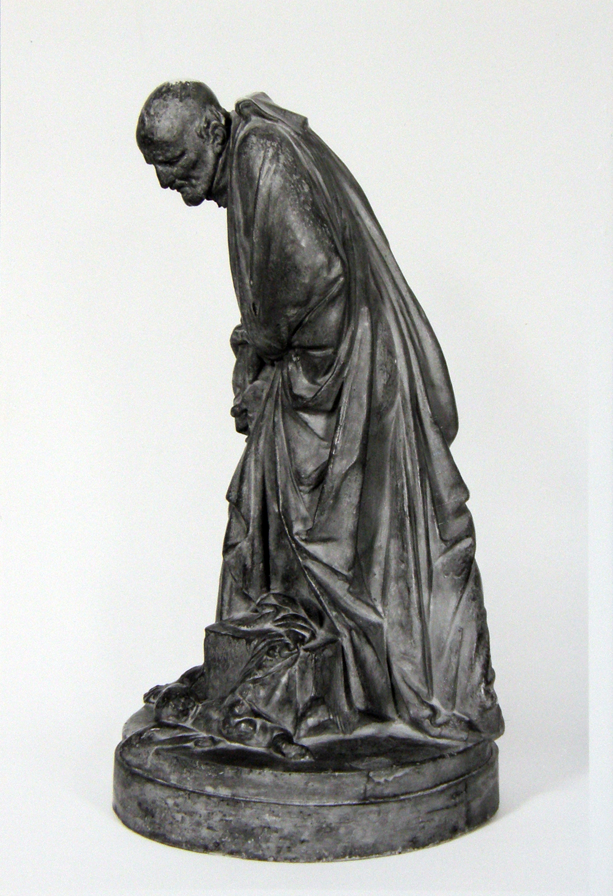 Terra cotta statue, VIncent de Paul, standing, cassock, ample cape, based on Stouf model; two foundlings; internet image