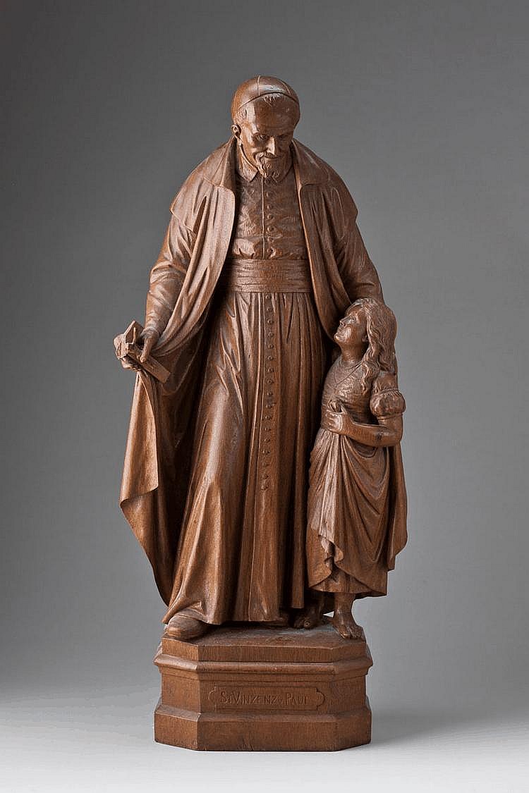 Broken crucifix in right hand; wood