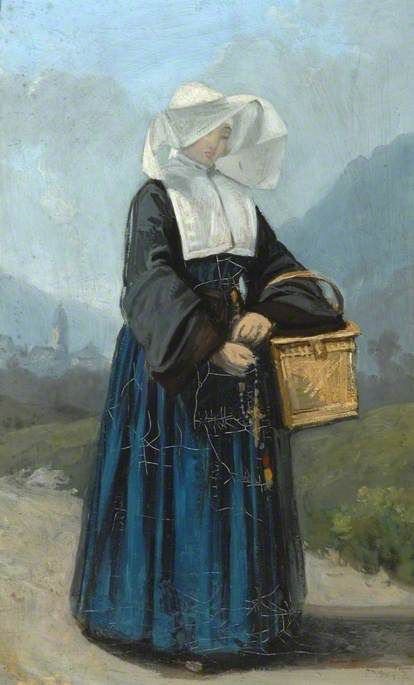 Sister saying rosary, walking