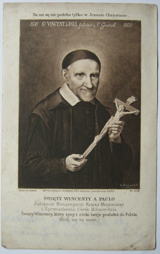 Text: "St. Vincent, whose sons and daughters labored in Poland, pray for us."