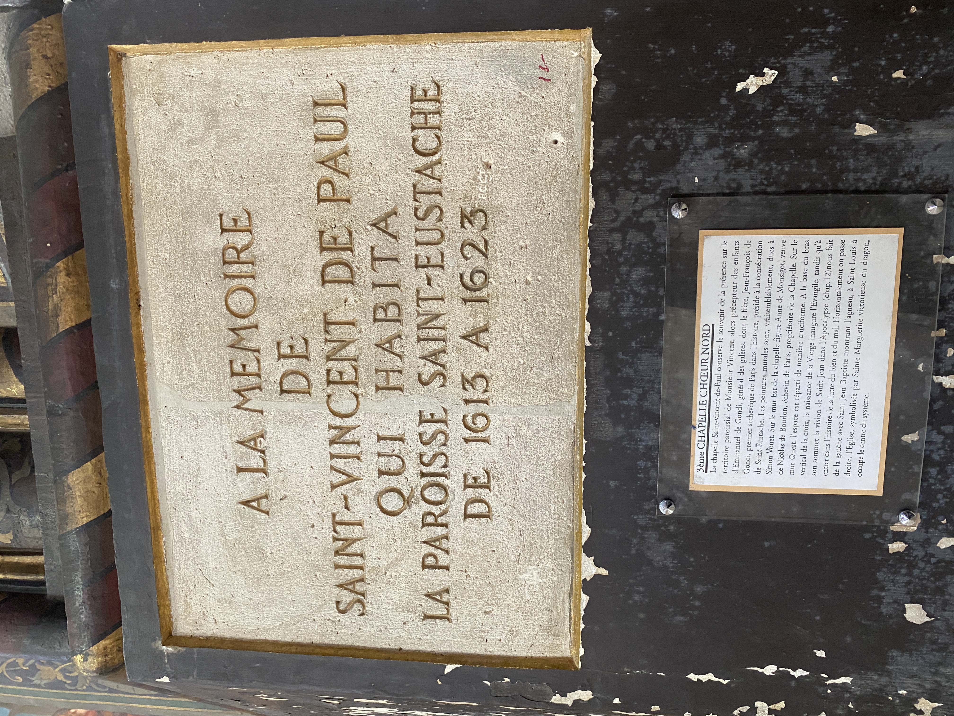 Text: "In memory of SVdP, who lived in the parish of St. Eustache from 1613 to 1623."