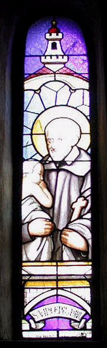 Vincent de Paul holding child and cross; original in parish church, Gourbera (Landes).