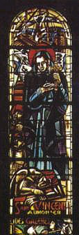 Vincent de Paul, crucifix in hand, with galley prisoner. Text: "SV, chaplain of the galleys." Location unknown.
